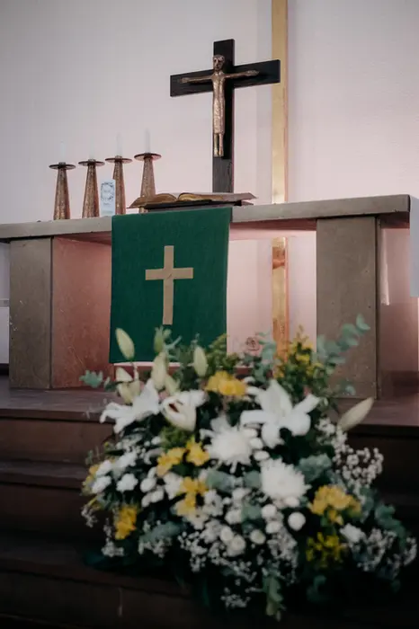 Una Primera Comunión en una iglesia católica,